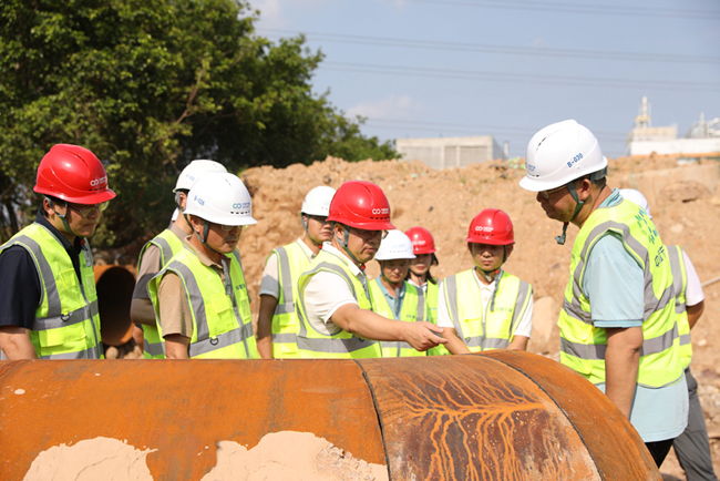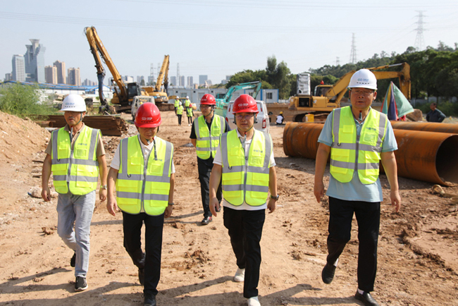 8月8日,华润微电子地块排洪渠迁改工程(下称华润微项目)顺利通水,标志着项目建设取得阶段性成果,并获得业主单位深圳市宝安区水务局来信表扬。9日下午,公司常务副总经理(挂任)、董事杨凯华赴华润微项目现场调研,向项目建设团队取得的成绩表示祝贺,并实地查看项目建设情况,现场协调解决项目推进中的问题和困难。